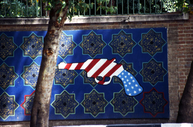 Political propaganda at walls of old US emabassy. Tehran. Iran.