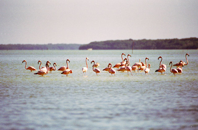 Pink Flamingo (Phoenicopterus ruber), Celestun. Mexico.