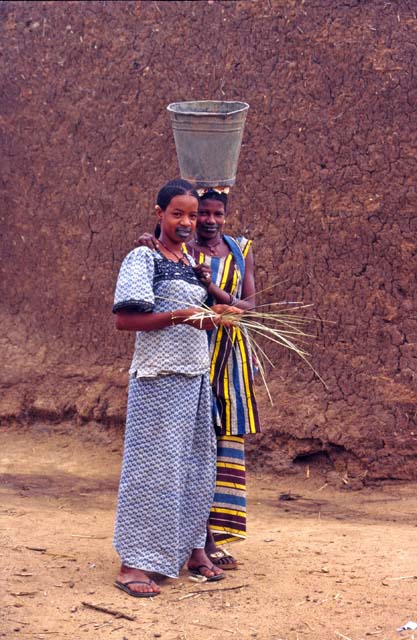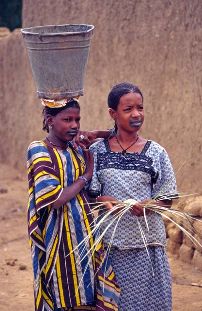 Local girls. They have decorative tattoo around their mouth. Boré village. Mali.