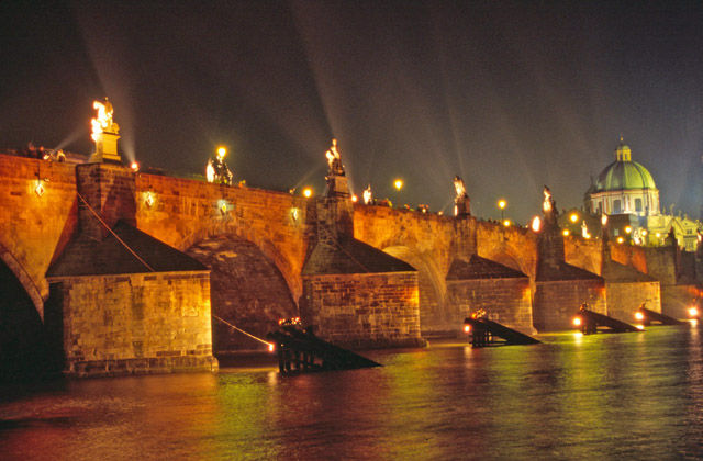 View to Mala Strana and Vltava river brigdes, Praha. Czech Republic.