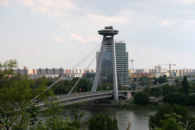 Bratislava Castle from 13th century is massive rectangular building with four corner towers. The Castle is located on the top of the hill of the Little Carpathians directly above the Danube river in the middle of Bratislava. Slovakia.