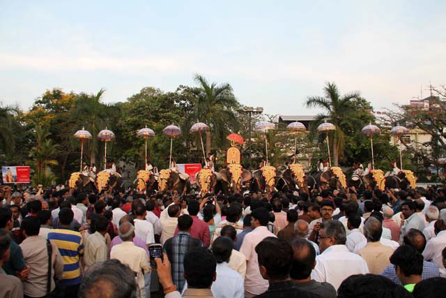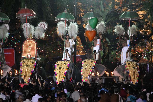 Pakalpooram (elephant procession), Ernakulam Shiva Temple Festival (Ernakulathappan Uthsavam). Ernakulam, Kerala. India.